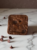 Our signature brownies are everything a brownie should be — thick, fudgy, and intensely chocolatey with perfectly chewy edges and a soft, melt-in-your-mouth center. Dark chocolate chips are folded into the batter, creating pockets of rich chocolate in every bite.